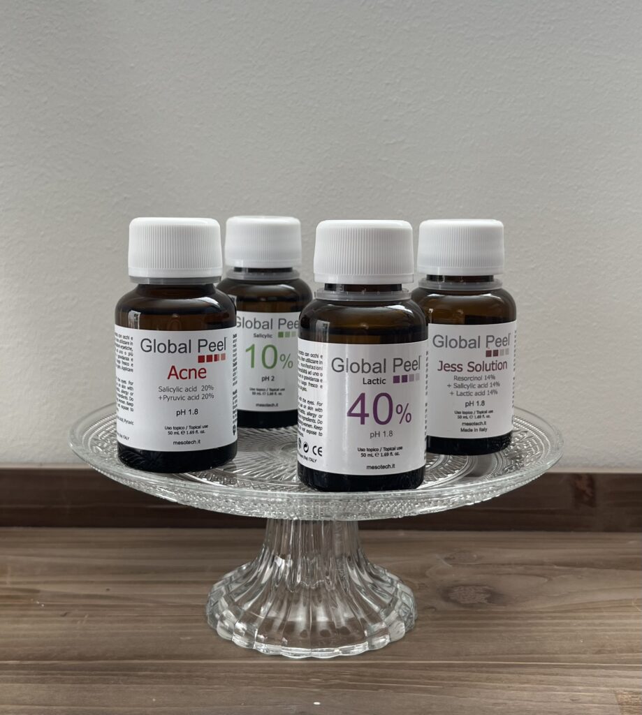 Global Peel chemische peels zijn exfoliërende zuren in verschillende sterkten en percentages. Ze stimuleren de regeneratie van de huid en verwijderen dode huidcellen op een versnelde en gecontroleerde manier.